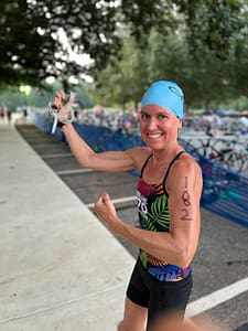 My journey started as a collegiate swimmer invited to swim in a relay triathlon. But after watching my biker and runner friend finish the race, I thought “I could do all that myself”.